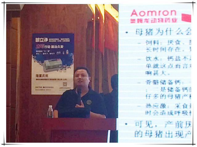 2016年8月15日江辉动物药业邀请奥姆龙公司参加广东河源市百丽龙城大酒店与海利生物科技股份有限公司联合举办高峰论坛暨卸立净上市发布会,此次会议参会人数80人,200头以上大型母猪场60家,会议重点推广公司产品:速产康、宫炎百病消、姆益健、金立维它、奥康得乐、阿米泰诺,公司技术部总监郭金权老师在会上针对《夏季母猪围产期完美解决方案》进行详细系统的讲解和培训,通过会议深度系统的讲解、交流,客户朋友们加深了对公司产品的了解,进一步提升了健康养殖的理念!