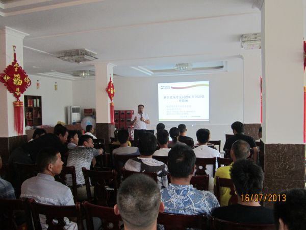 公司分别在2013年7月12、15、16日在江西新干、湖北随州、河南潢川等地召开技术推广会议。会议由公司技术部总监郭金权老师针对“夏季猪场常见问题的原因及处理方案”这一课题,结合公司的产品疗效及使用方法,做了系统的讲解,会议现场的养殖朋友们,均表示非常欢迎,这种形式的讲座,感到受益匪浅。