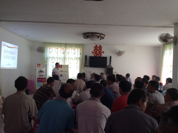 2014年7月17日,福建奥姆龙动物药业有限公司技术总监郭金权和福建大区徐经理在武平东流开展《夏季母猪的产后消炎与驱虫》技术交流会议,针对养殖户面临的问题进行面对面的交流。郭老师以丰富的临床经验,加以通俗的语言沟通互动,将奥姆龙的母猪系列产品做了详细讲解,以三个如何:“如何用、如何看效果、如何达到健康繁殖”。让到会的养殖朋友对如何养好母猪、如何提升养殖效益有了更深的认识,得到岩前养殖朋友的高度评价,称赞奥姆龙把技术送到家。