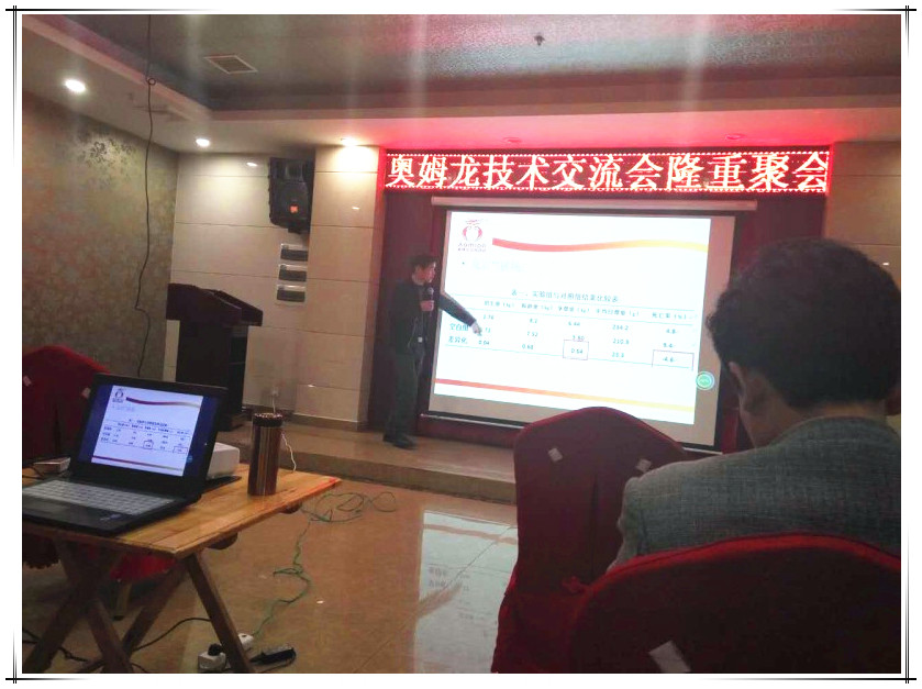 2016年4月8日,公司在湖南省永州市召开技术推广会议。会议由公司技术部余建老师针对《当前母猪产后奶水不足的原因及对策》这一课题,结合公司的产品疗效及使用方法,做了详细系统的讲解,会议现场互动氛围热烈,养殖朋友们纷纷表示通过学习加深了对奥姆龙公司产品的了解,进一步提升了健康养殖的理念!