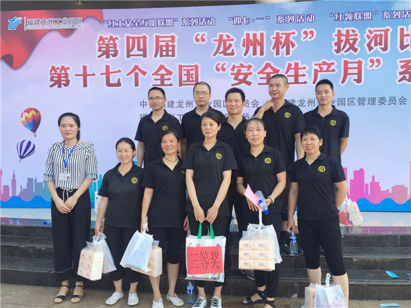为丰富职工的精神文化生活,增强团队凝聚力。我司于2018年6月28日上午组队参加了由福建龙州工业园区举办的第四届“龙州杯”职工拔河比赛。
